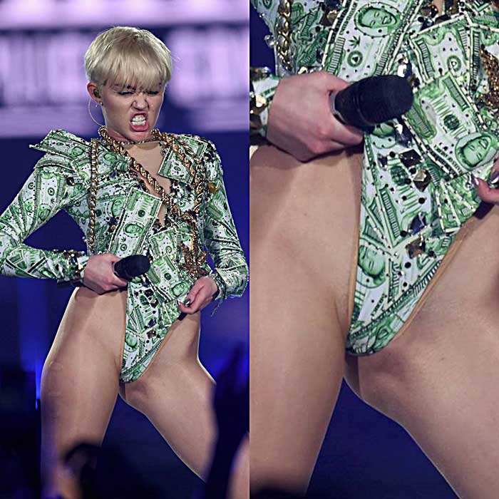 Miley Cyrus 100% nude pussy on stage (wardrobe malfunction on Bangerz …